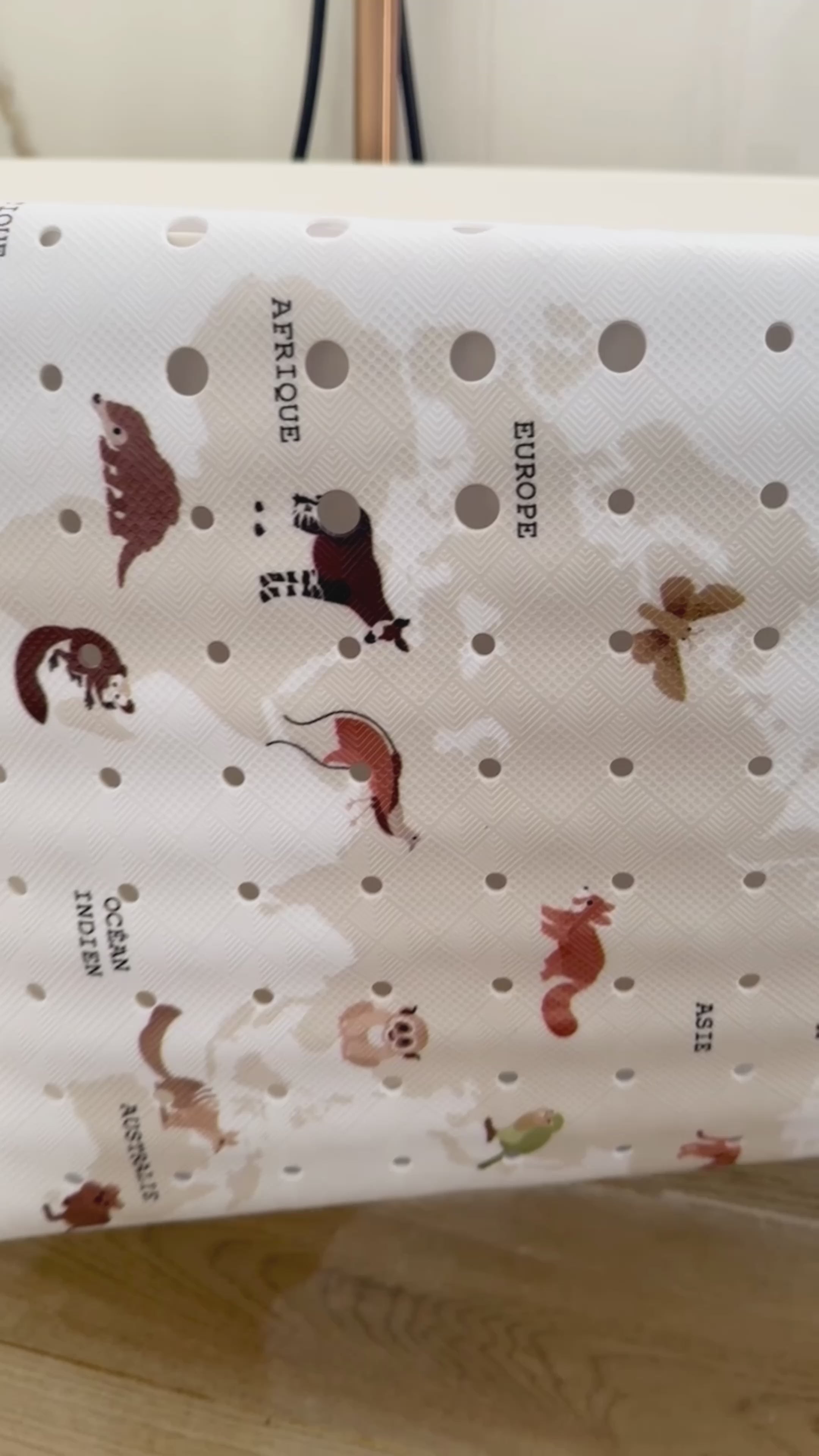 Cette collab met en avant une carte du monde avec de magnifiques animaux. Ce tapis offre à votre enfant un espace grand, sécurisé avec une surface antidérapante. Et il se lave facilement en machine à 30°C !